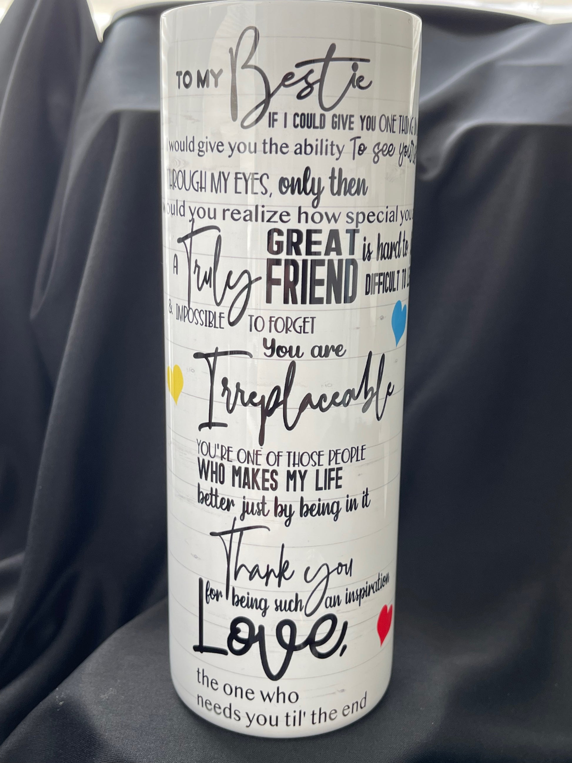 When you have meet your best friend and they are your ride or die no matter what a stainless steel double insulated tumbler is a perfect way to let them know how much they mean to you.