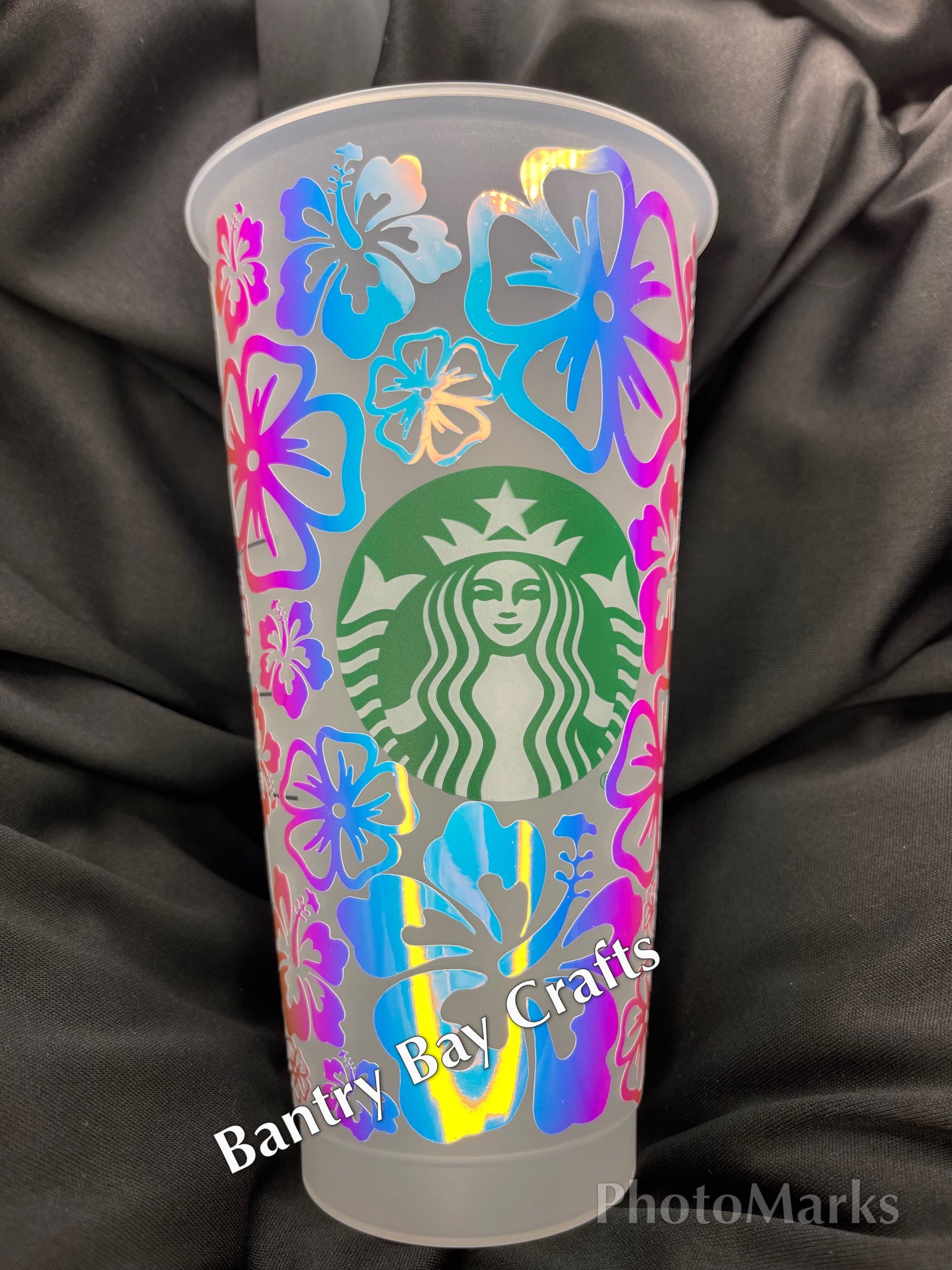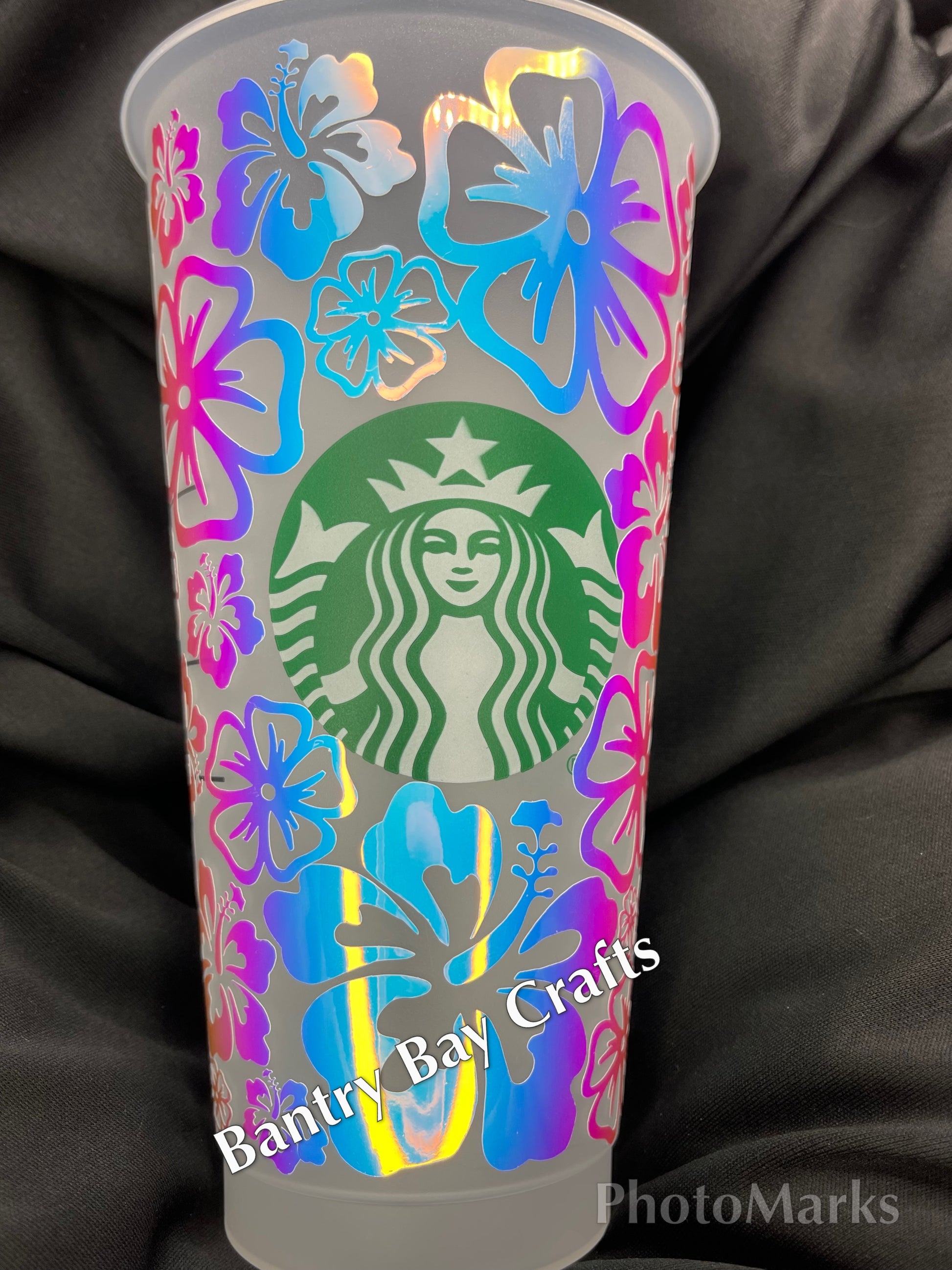 Look at this beautiful hibiscus done in a holographic vinyl .