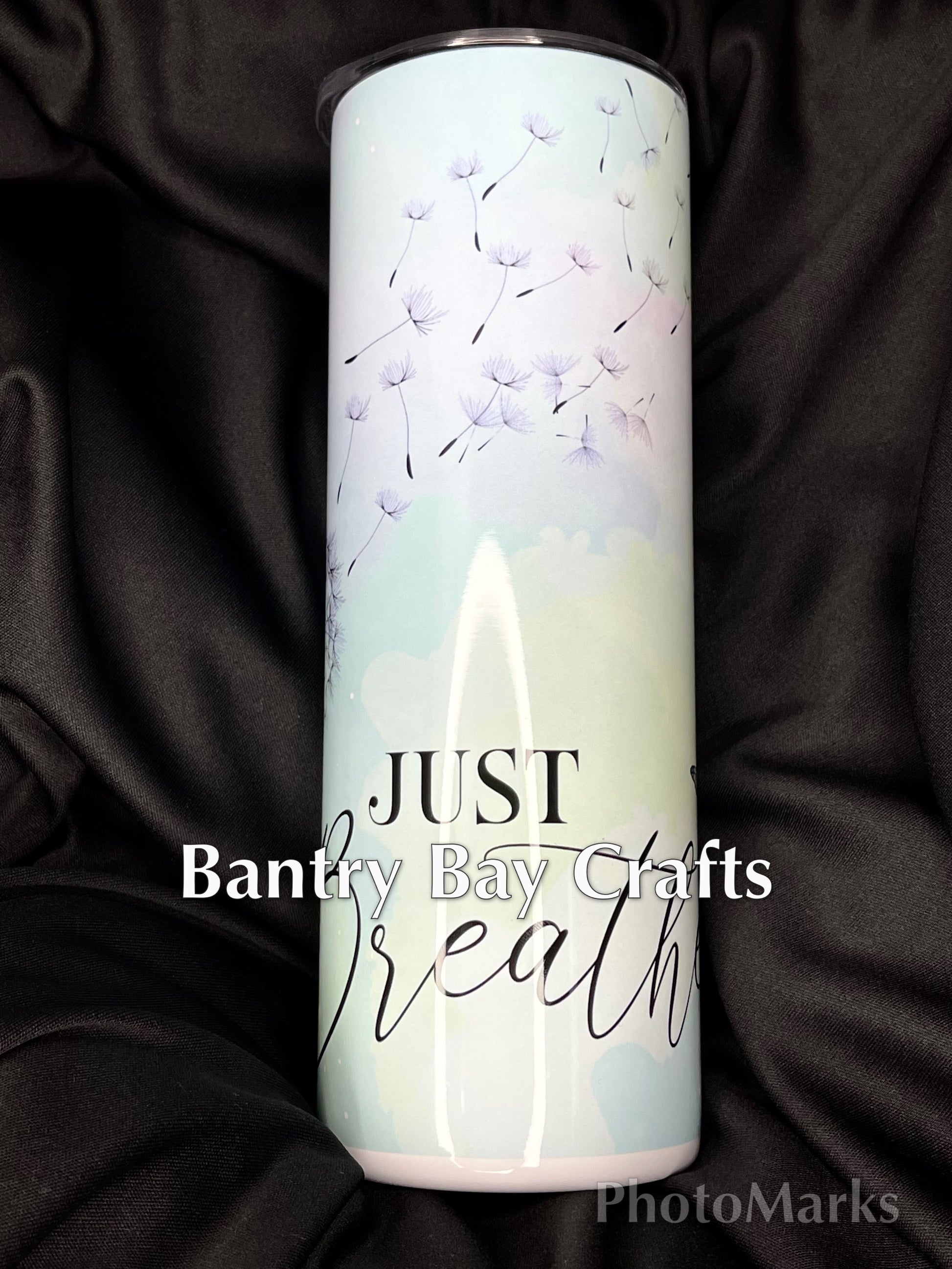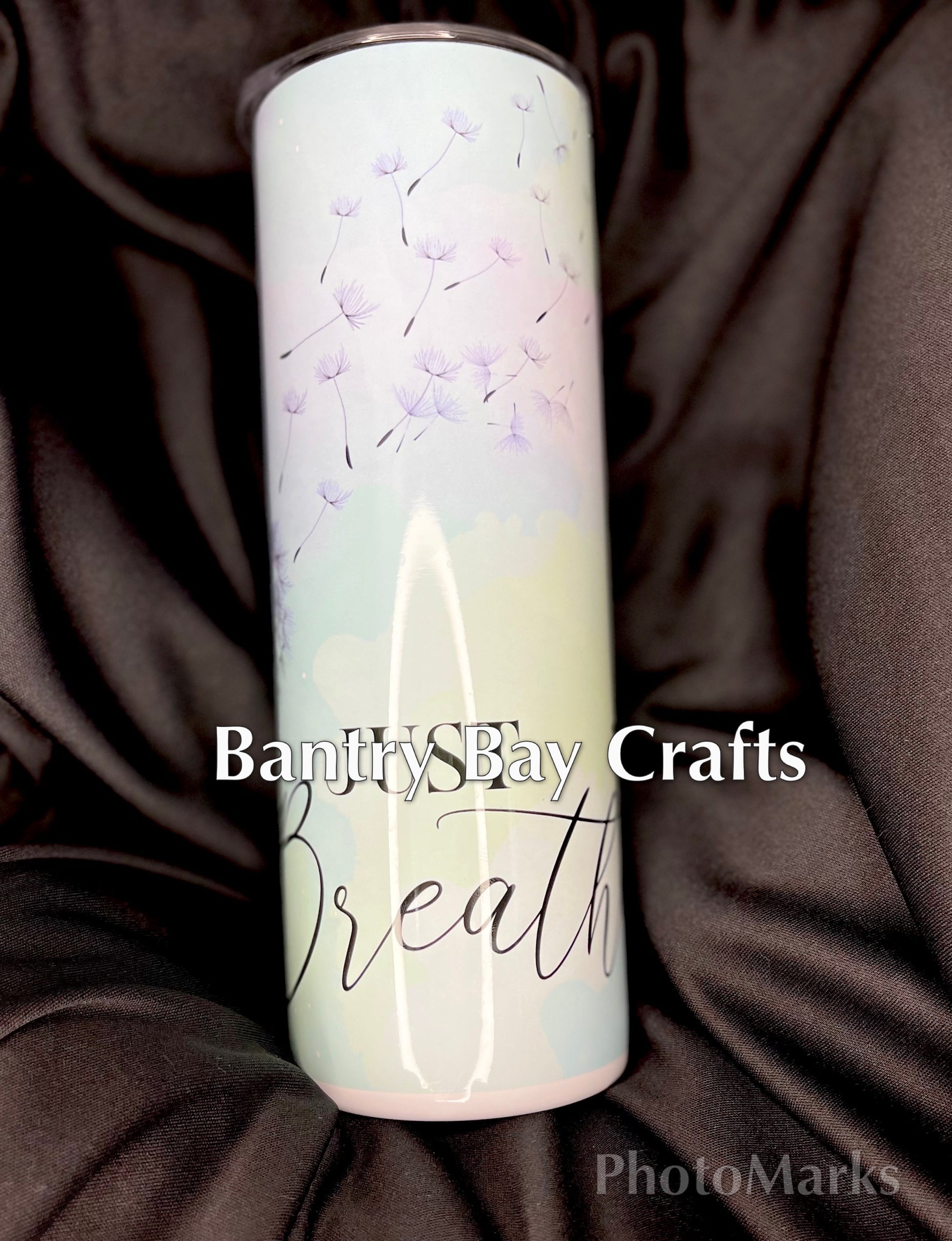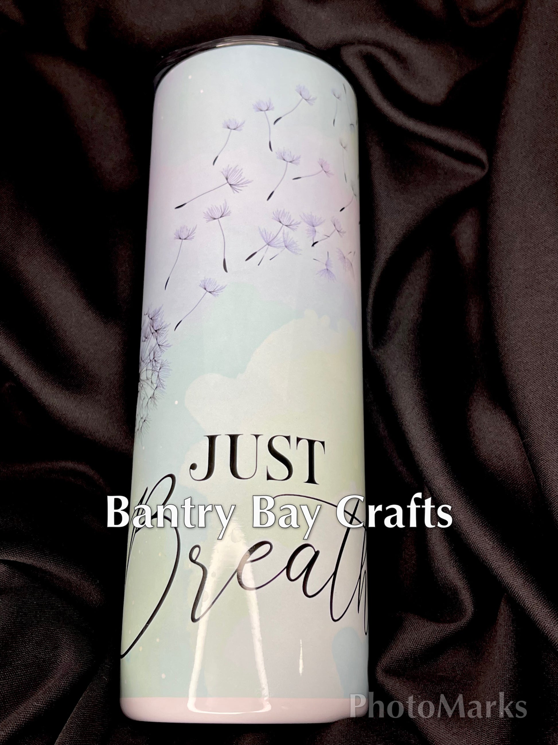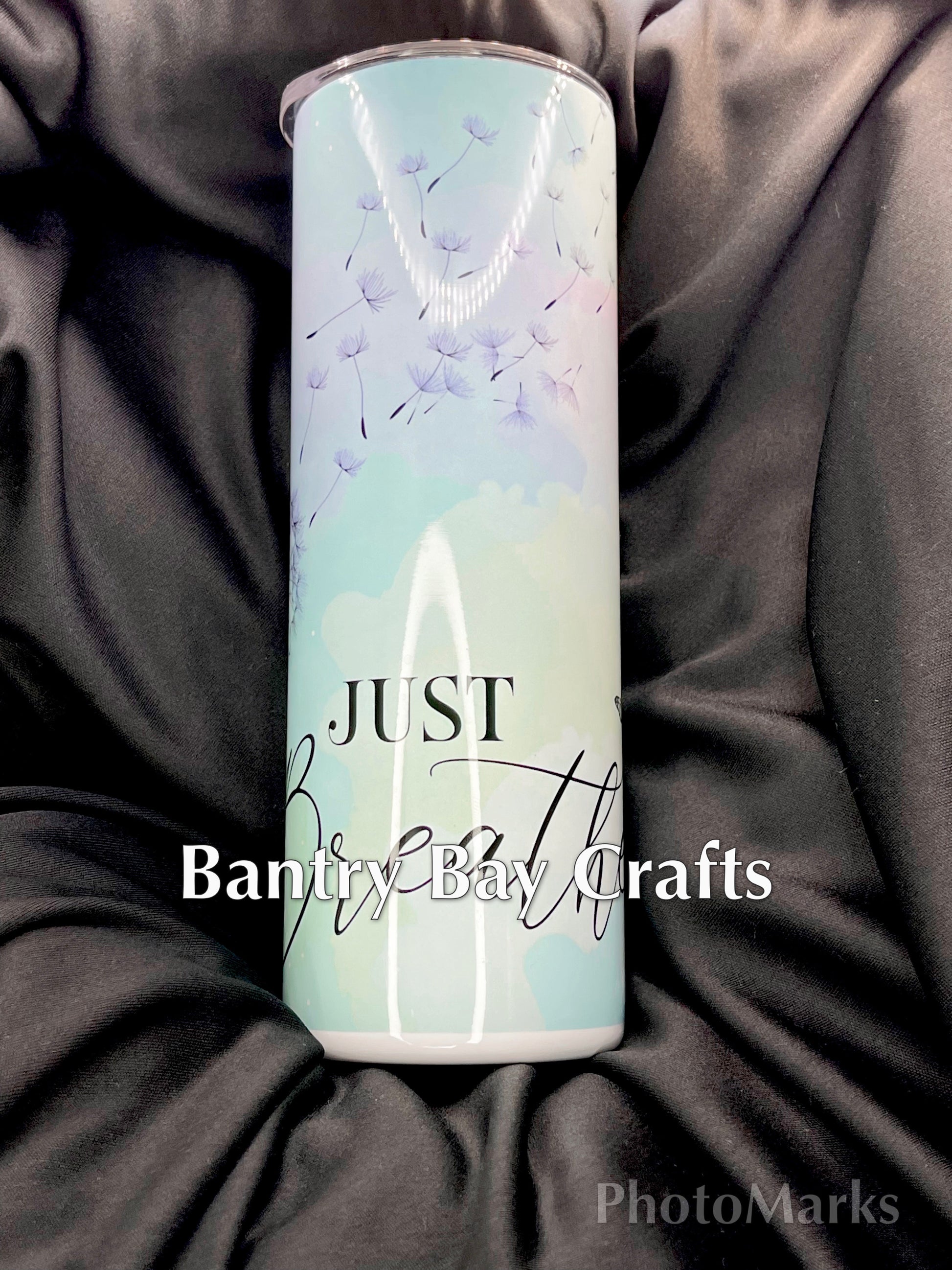Just a friendly reminder for us to just breathe . It is a double insulated stainless steel tumbler featured in glossy but can be done in the glow in the dark.