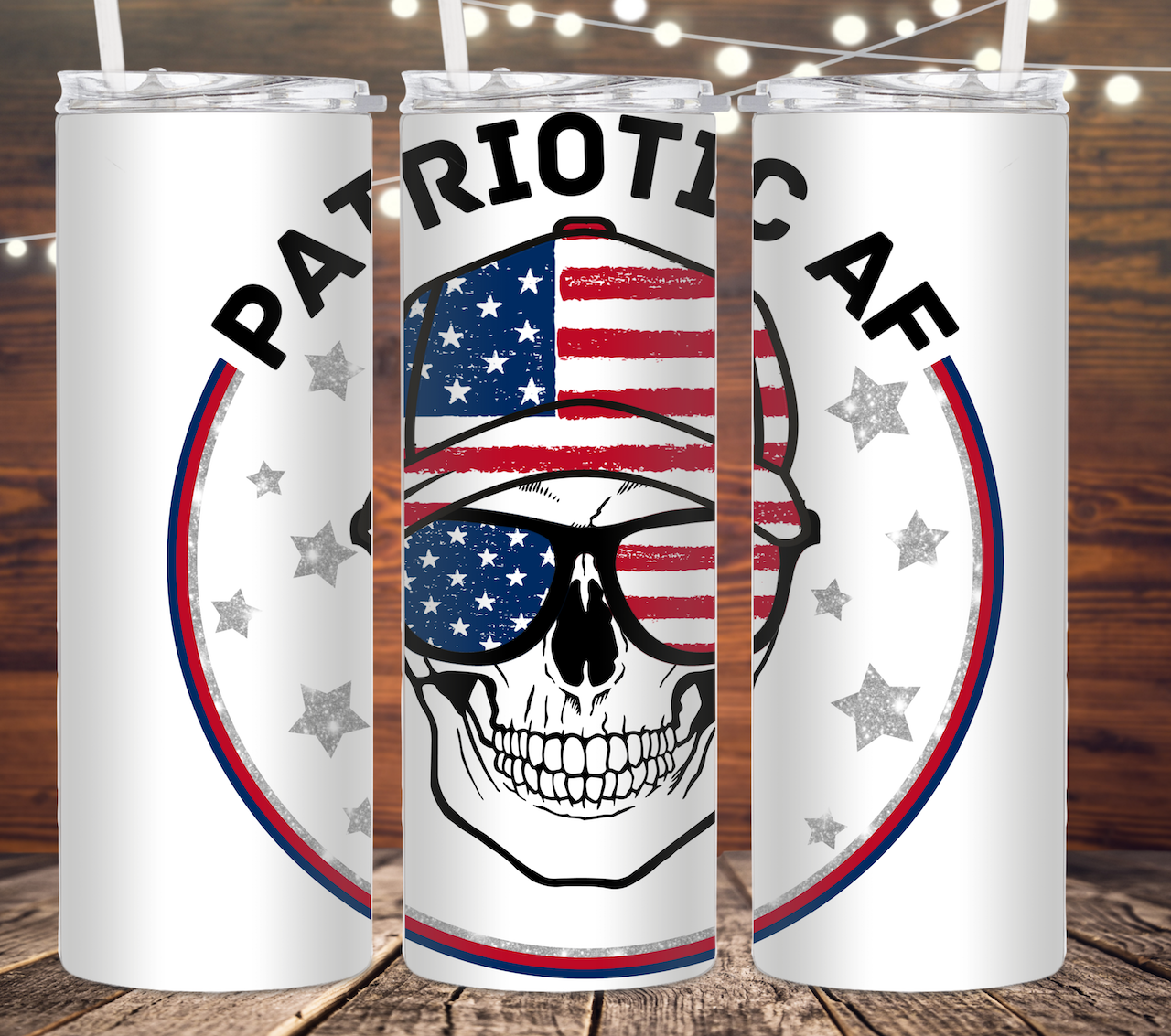 We have this patriotic AF skull tumbler just in time for up coming holiday for those who love skulls and the 4th of July. This tumbler will help keep your beverages cold during the hot summer. Please take note we also have this design on a matching shirt.