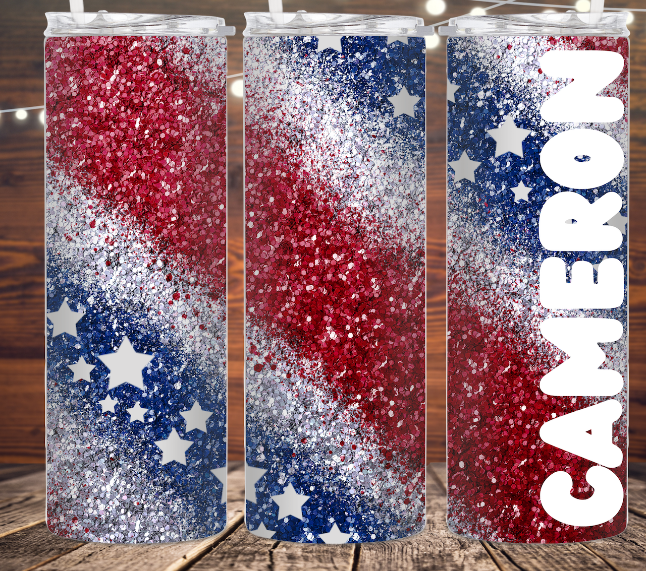 We have this beautiful patriotic tumbler in time for the upcoming 4th of July. This tumbler is sublimation but we did personalize it with a white vinyl that will go in the dark.