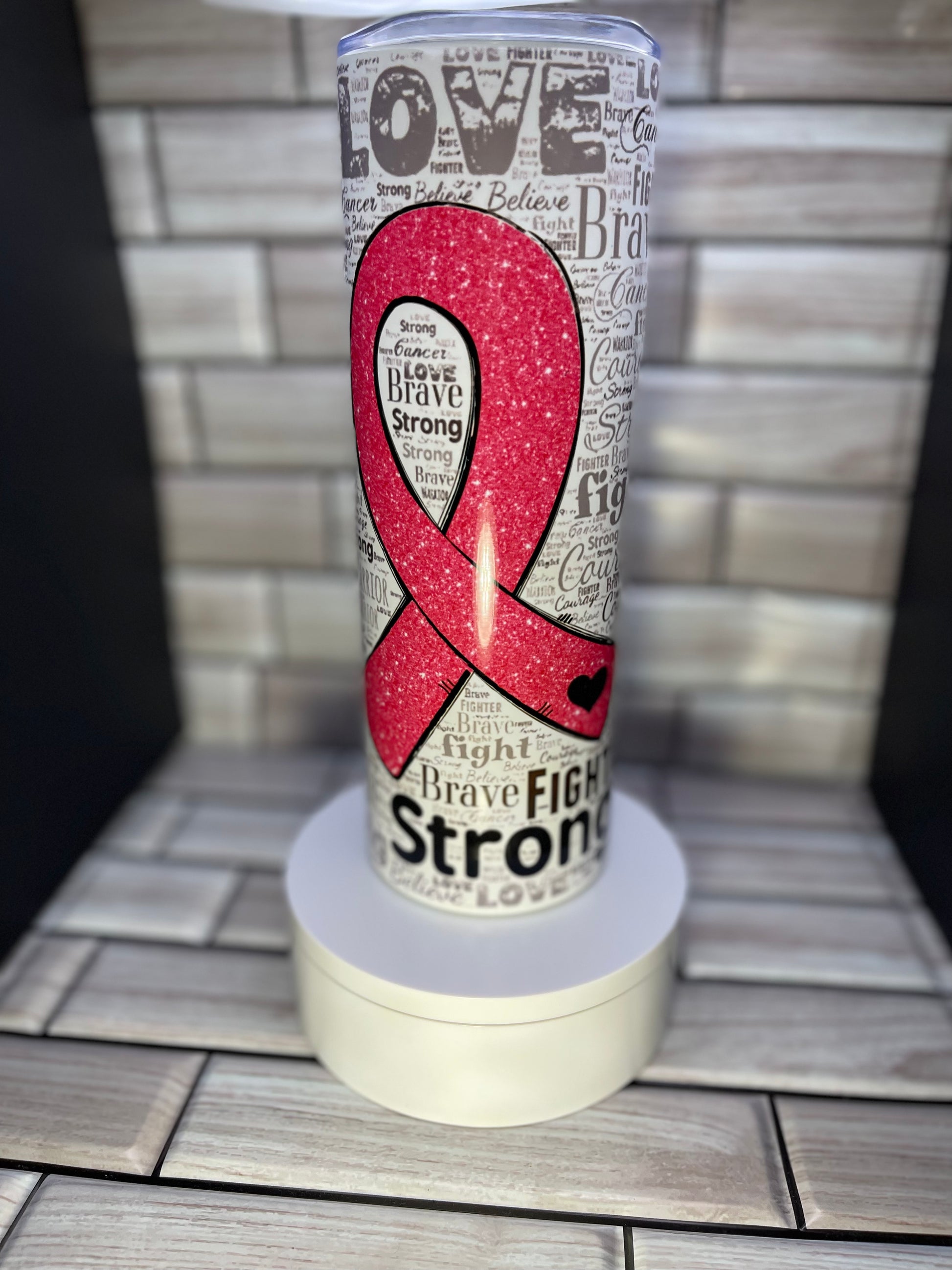 Strong, Fight,Brave Warrior Pink Ribbon Tumbler ( BreastCancer Awareness )