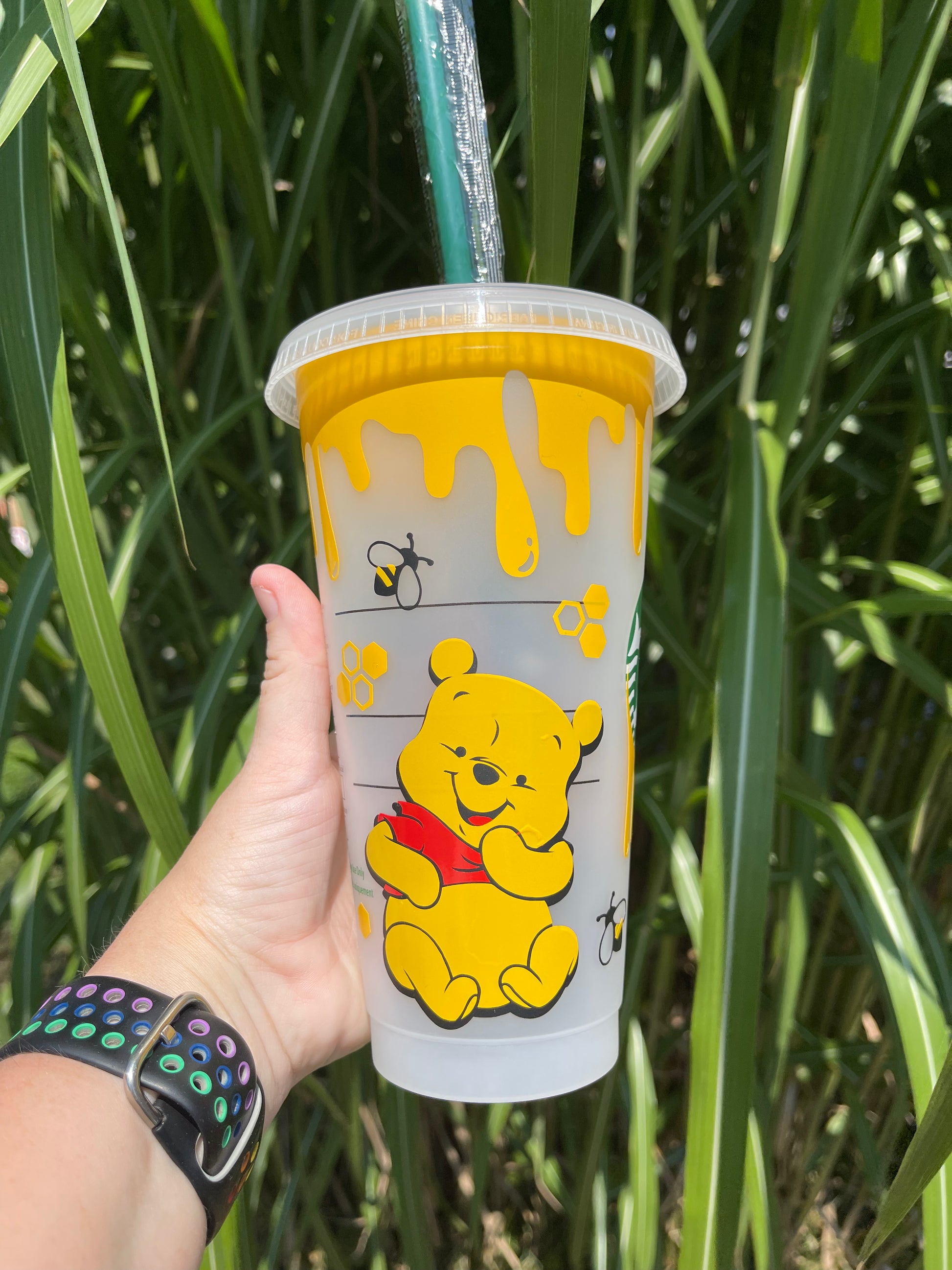 We made a simple Winnie the Pooh cup with some honey dripping down and some bee’s throughout.